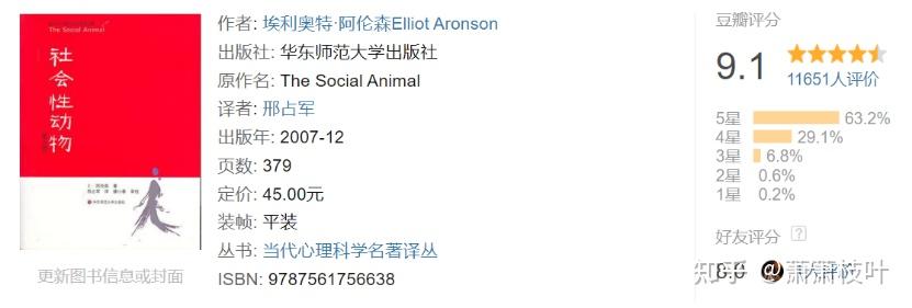 《社会性动物》是“美国社会心理学的《圣经》”(Revue des Questions Scientifiques的评价),“仍然是更好的……是一部杰做”(Contemporary Psychology的评价)。本书从1972年出书第一版以来,在世界范畴内畅销数万万册,是社会心理学范畴内更具影响的著做。做者简介: