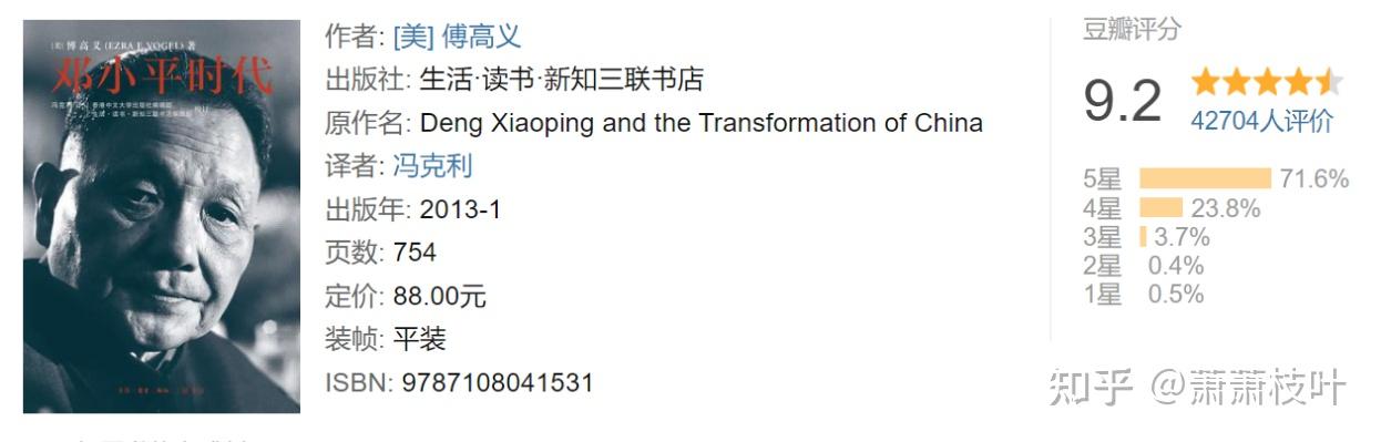 小平深入影响了中国汗青和世界汗青的走向,也改动了每一现代中国人的命运。解读邓小平的政治生活生计及其行为逻辑,就是解读现代中国,解读小我命运背后的汗青变局。 哈佛DX傅高义传授倾十年心力完成的权势巨子巨著《邓小日常平凡代》,是对邓小平跌宕起伏的一生以及中国惊险高低的变革开放之路的全景式描述。做者对邓小平小我性格及执政气概停止了深层阐发,并对中国变革开放史停止了完好而独到的阐释。书中涵盖丰硕的中外档案材料和研究功效,以及为数浩瀚的做者独家访谈。对中美建交、华国锋汗青评估、变革开放的幕后盘曲、邓小安然平静诸多其时关键人物之关系、香港问题、邓小平南巡等严重议题均有详述及分析。本书既具学院研究的严谨专精,又对中国现实政治与事理情面有透辟掌握,被誉为邓小平研究“纪念碑式”的著做。做者简介: