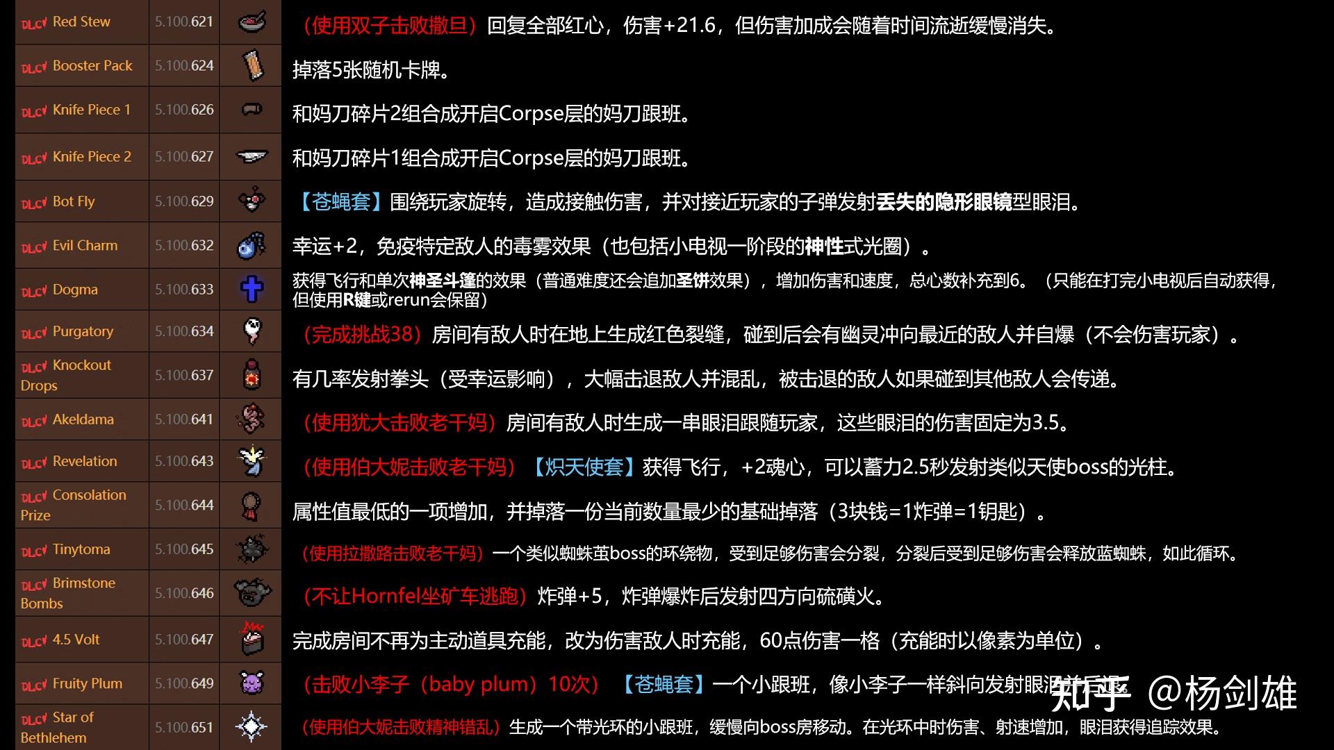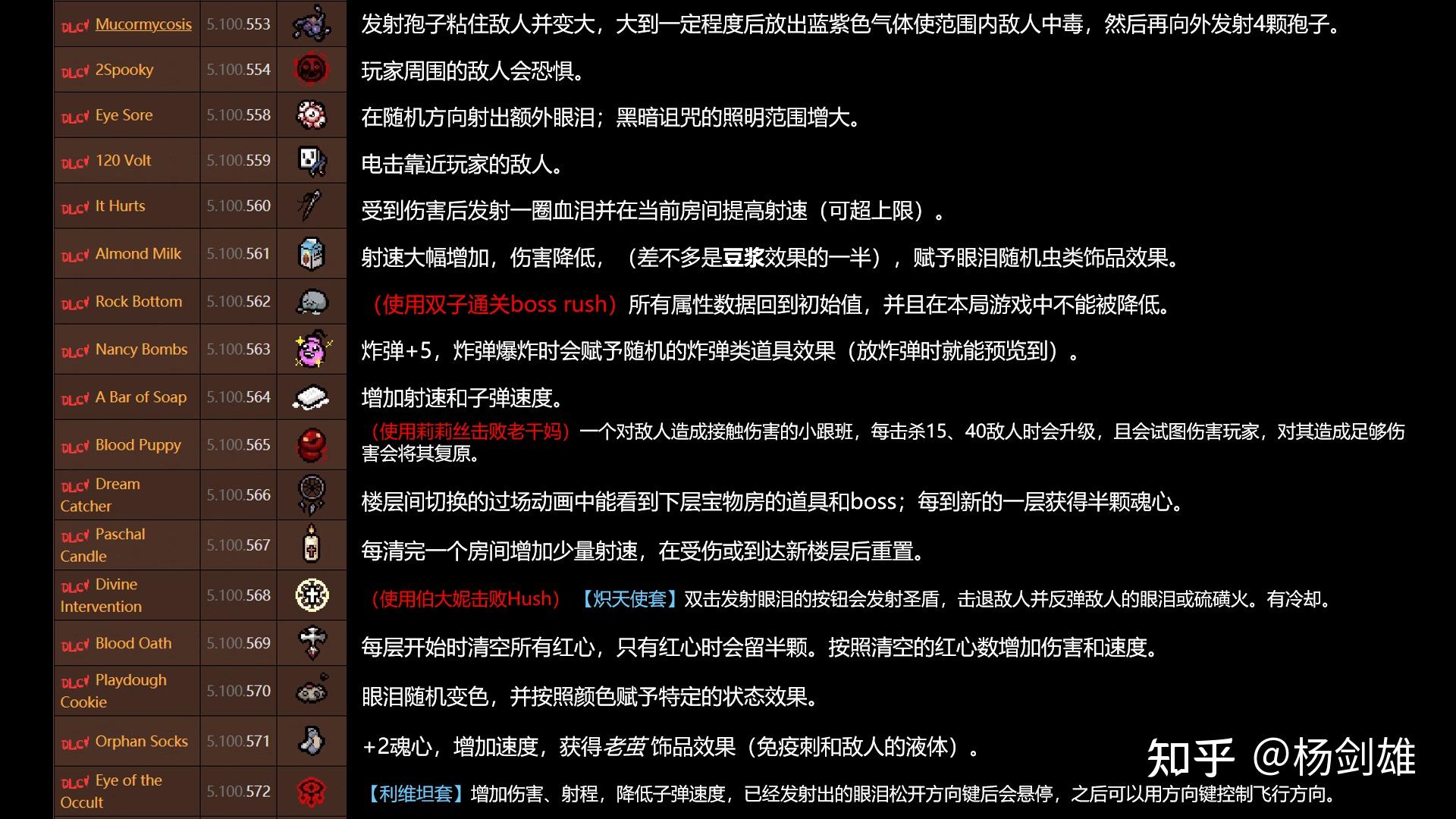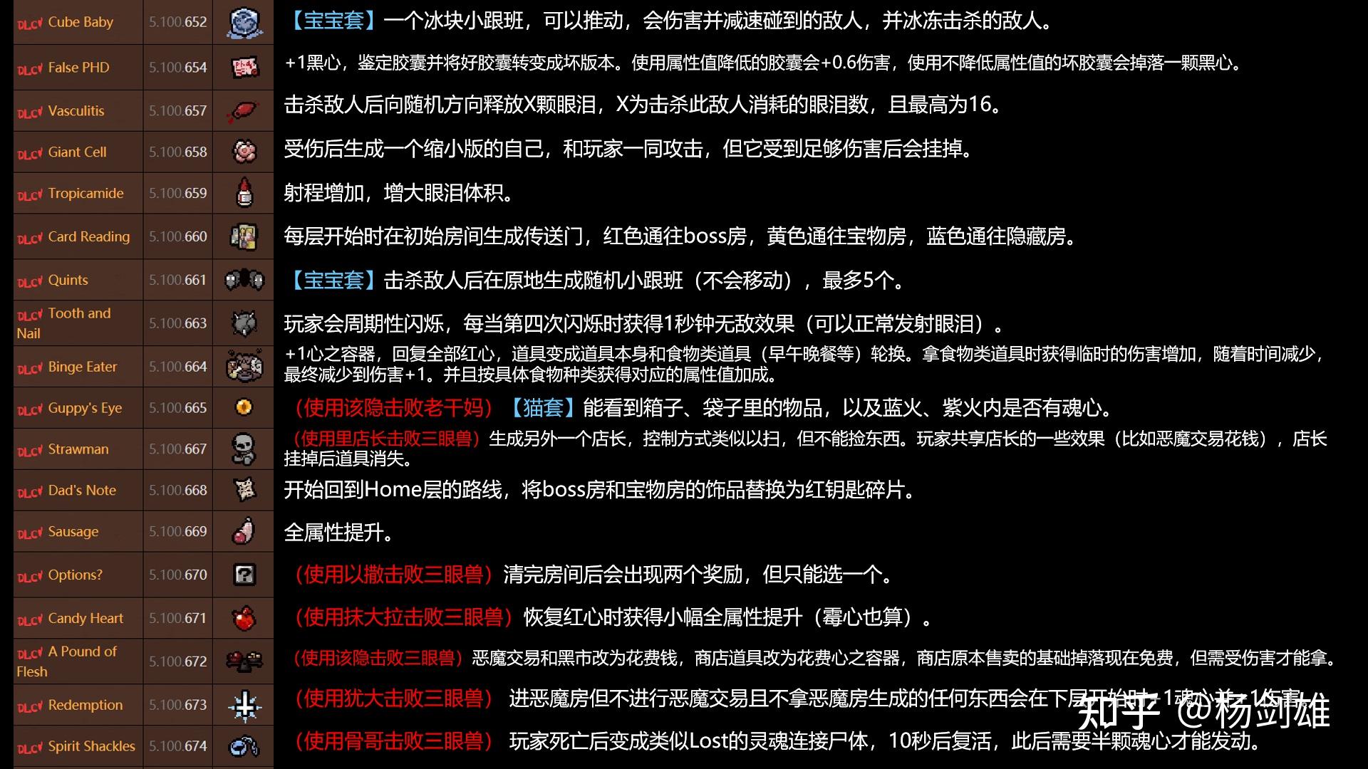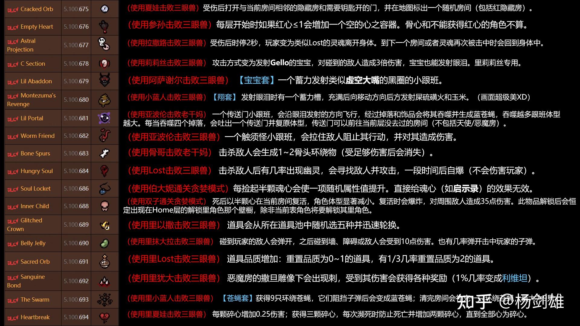 之后再说说忏悔中被改动的道具。有的道具是小改,有的道具几乎重做了,还有的道具小幅或大幅换了贴图。只换贴图的就不说了(各人拿了之后就晓得是啥了),换道具池的不说了(值得留意的是金箱子的道具池大动,根本都只是boss房道具了),新增的套拆部件不说了(纳威精灵:不是我怎么就成了苍蝇了??),新增的道具共同也不说了(好比硫磺火+寄生虫,阿萨谢尔狂喜),那里只说被改动的道具,按被动主动和ID挨次。得到强化的标识表记标帜为绿色,被削弱的标识表记标帜为红色,重做或者有强化有削弱的不做标识表记标帜。很可能不全,欢送各人积极弥补。