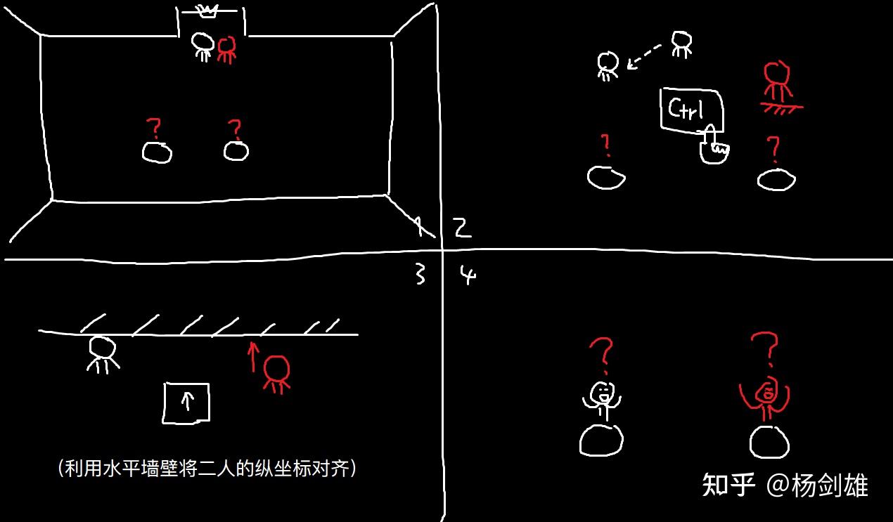 那个操做也能使特定的角色去拿某一个道具。固然按左Ctrl是以扫静行,但需要以扫拿道具时,好比道具在右下,就能够先按左Ctrl让雅各布跑到以扫的左上,然后两小我同时往右下走就行了。还有一点就是,关于二选一的道具,两小我若是对齐位置完全同步拿的话能够都拿到!大致流程如下: