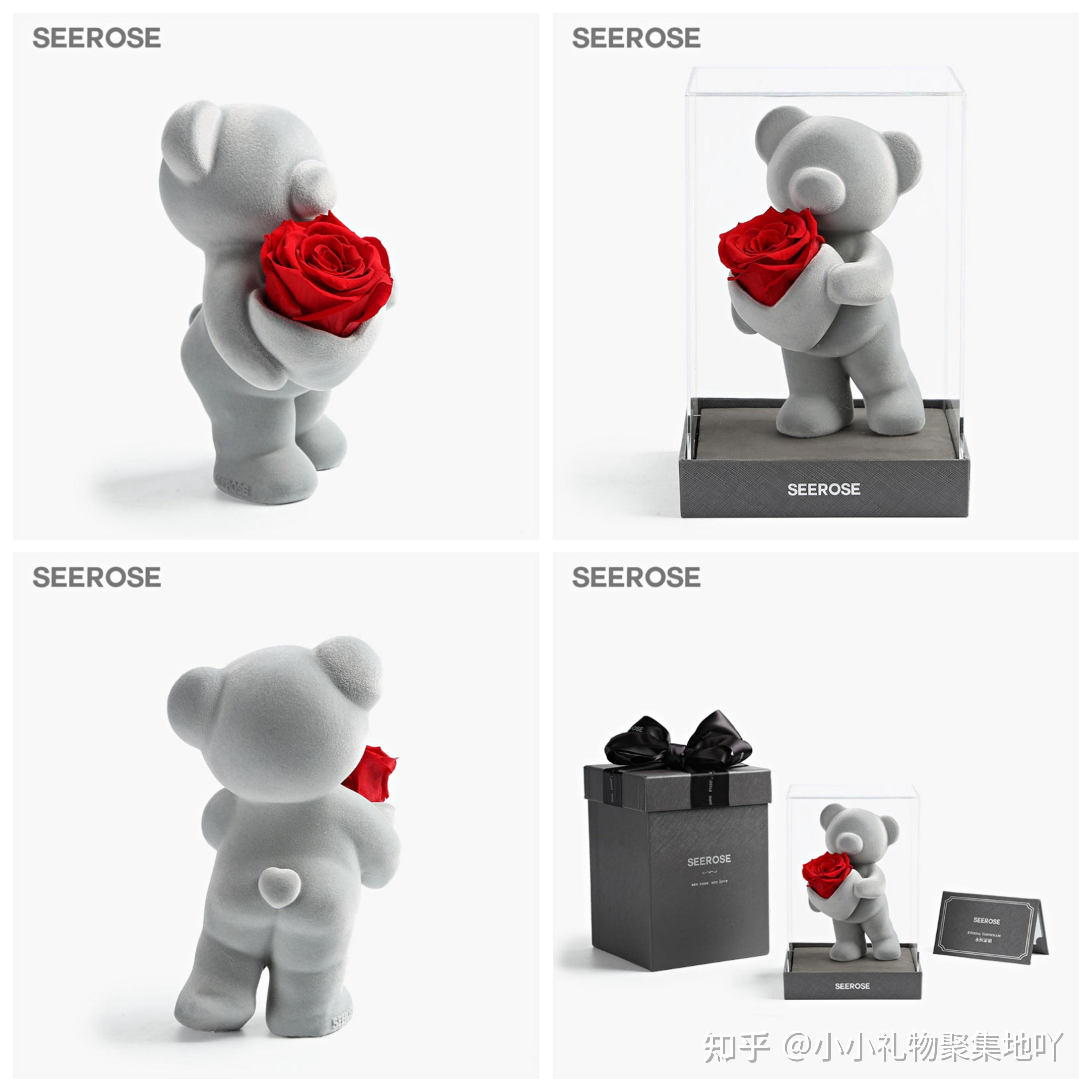SEEROSE长生花玫瑰花爱心站立熊礼盒国庆恋人烈女友示
