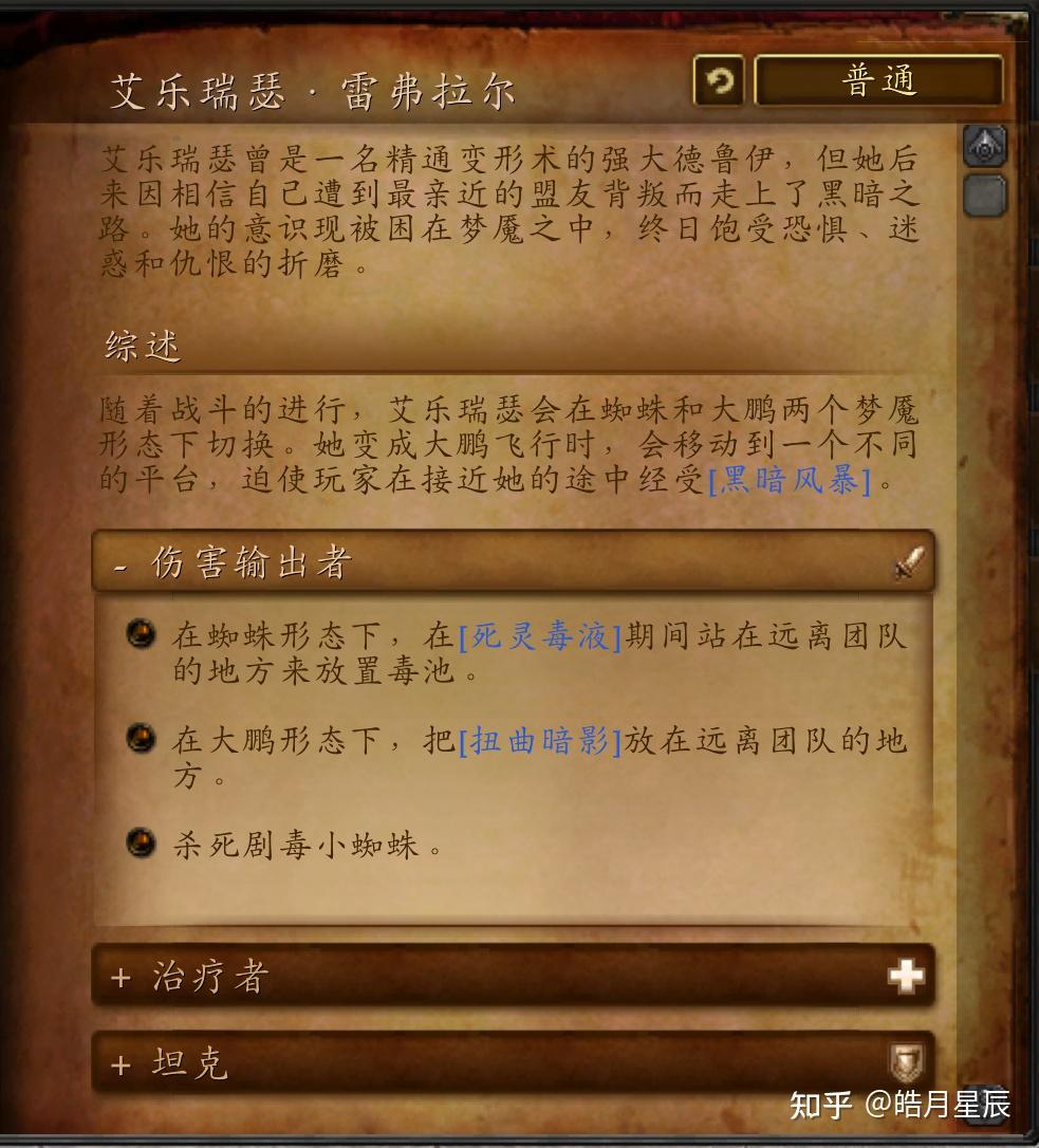 艾乐瑞瑟的意识回到了翡翠梦境,但是却被翡翠梦魇污染成了满怀恐惧、疑惑和憎恶的怪物——在蜘蛛和乌鸦形态中来回切换。她在梦魇中所处的场景是被堕落后残缺的莫高雷和倾倒的雷霆崖。那恰是她向哈缪尔复仇的执念所构成的。若是不阻遏她的话,那种堕落会渐渐渗入进现实世界,雷霆崖和莫高雷会被噩梦占据。
