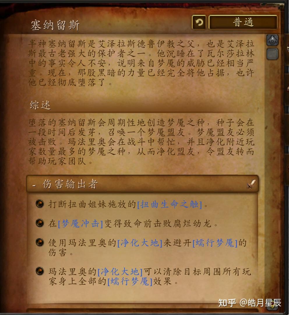 “塞纳留斯回归的私语回荡在丛林里的每一棵动物之间。愿他指导我们穿过天堂烈焰并打败炎魔之王对世界之树的进攻。”