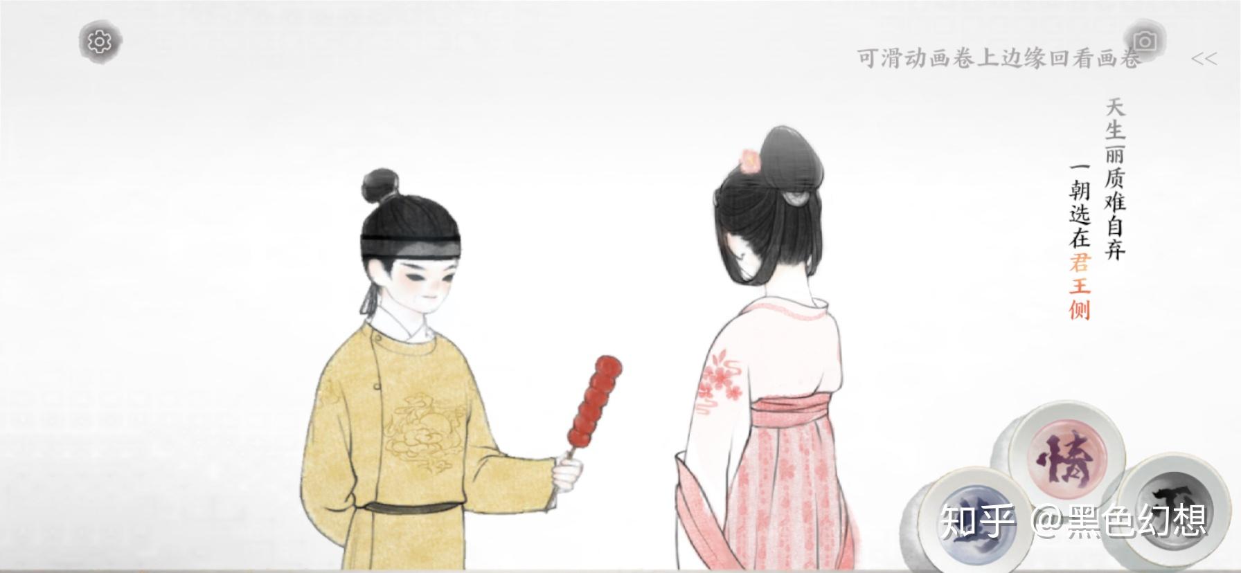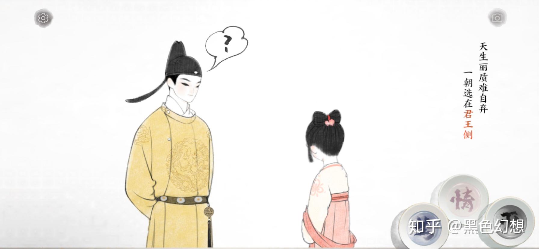 剧情就是白居易的长恨歌,讲唐明皇还有杨贵妃的恋爱故事,操纵情、生、灭还有手势控造达成每句诗的要求。更像是在看剧情,但达成成就仍是得要动点脑子。但像我那种不想按剧情走的,于是就总能配出一些奇奇异怪的工具。