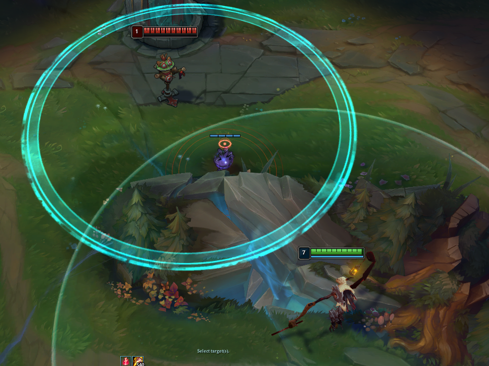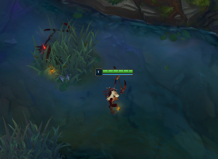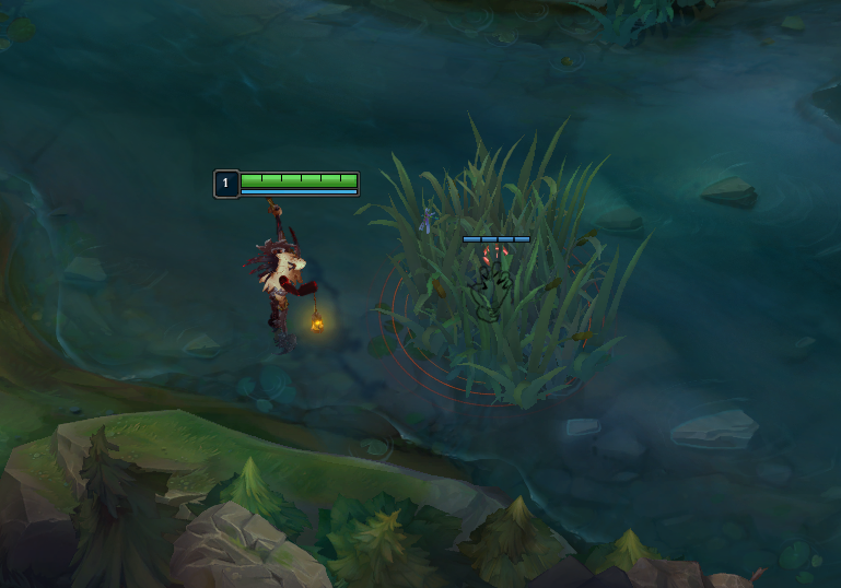若是想将稻草人的危险更大化,则需要玩家提早蹲在草丛里期待仇敌的靠近,利用W或者E触发Q技能被动的恐惧效果。