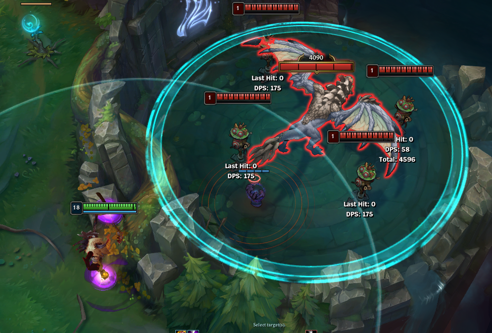大龙跳大大龙坑是一个很完美的跳大位置,因为稻草人的大招能够刚好把整个龙坑都给笼盖。所以有稻草人在的情况一般来说除非稻草人死了,要否则都不敢打龙,因为容易被5人大给团灭。