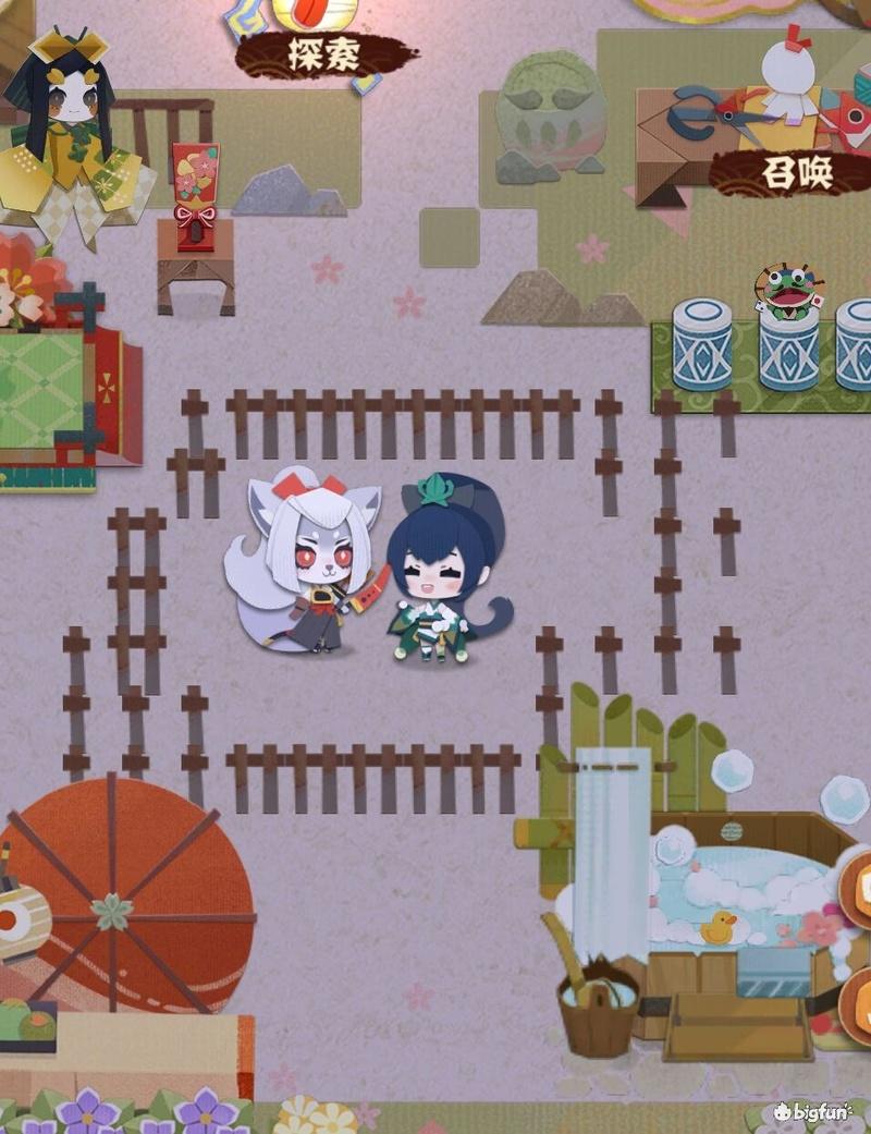 需求:桃花妖、樱花妖、秋千(此中一个式神去玩秋千)