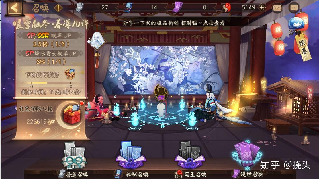 事实证明,人无聊起来就记吃不记打了,之前出于机缘巧合我又从头把阴阳师下了回来(并没有赶上三周年活动,淦!)而本来阿谁远古期间的账号,我已经找不回来了,不外问题不大,开小号我已经轻车熟路了,在颠末一两个月有一搭没一搭的签到当做消遣起头从头认识阴阳师之后,在2020年春晚完毕以后的十连抽中,我那个名字中都透露着恳求的账号获得了