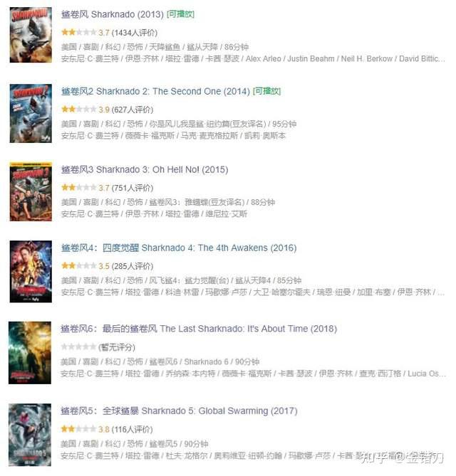 像《惊声尖笑》系列,在2013年拍完第五部就已经没有再出续集了;《霍比特时代》,曾被华纳兄弟告上法庭;《鲨卷风6》被评为史诗级大烂片。