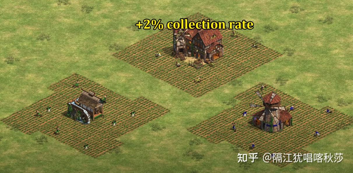本图来自spirit,当农田紧挨着磨坊或tc时,一个没有研究一级手推车的农夫一分钟大约为你消费18-20食物,研究了一级推车后能够到达22.4,二级推车后是26。(阿兹特克,高棉,斯拉夫,波兰不包罗在内)那个数值可能略高,因为尝试中长短常抱负的情况,现实中可能因为重生产的村民的呈现招致单元碰碰从而略微降低农夫效率。