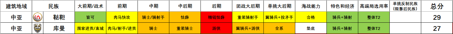 · 库曼:中后期马队民族;同定位强势民族:【T1级】波斯、【T2级】法兰克