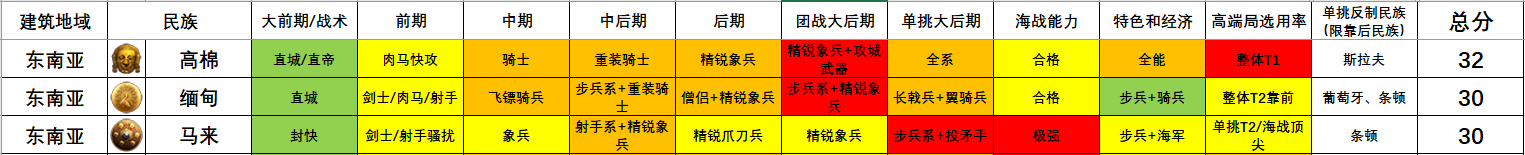 · 条顿:中后期马队、阵地战民族;可替代强势民族:【T1级】高棉、【T2级】缅甸