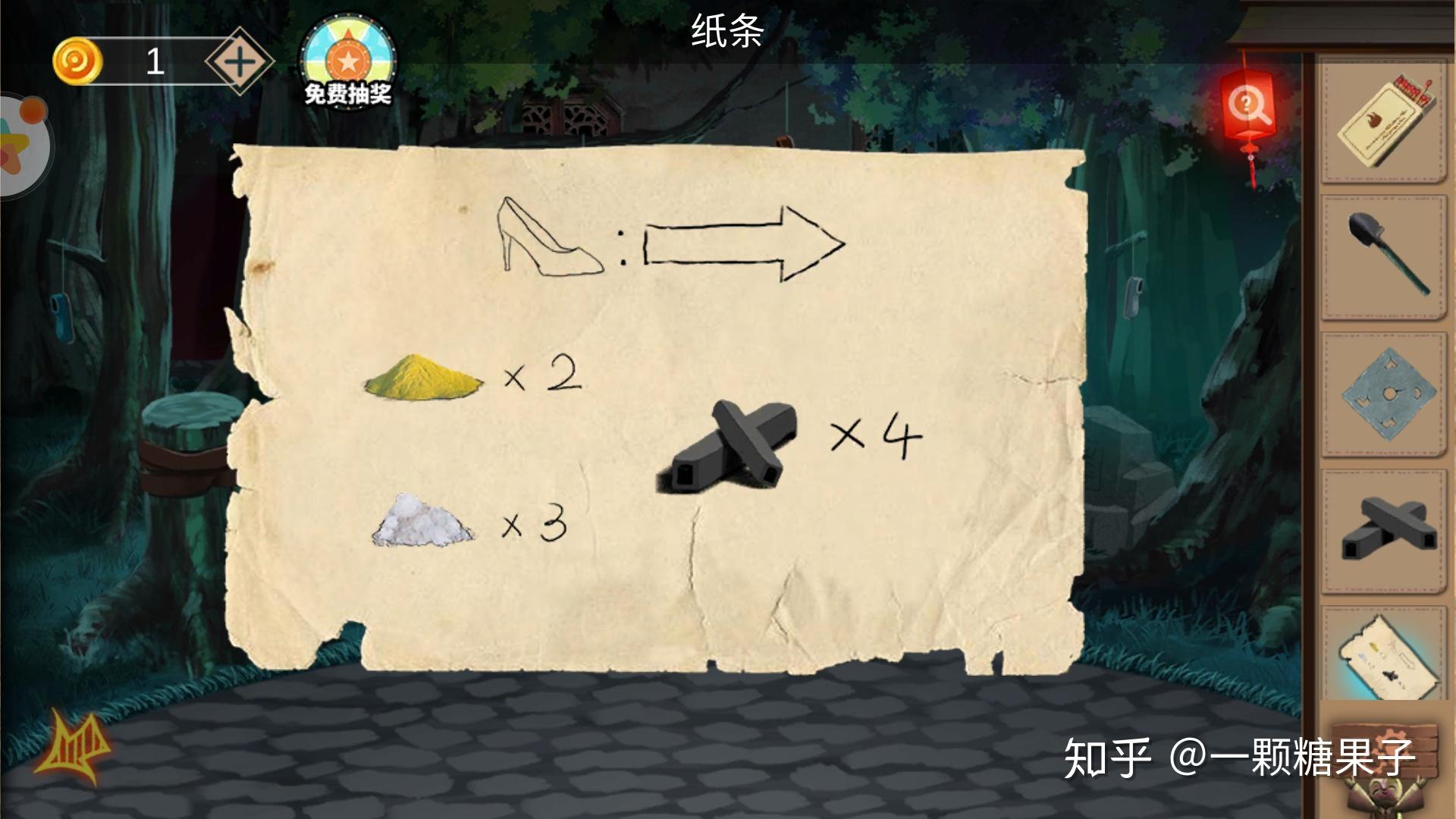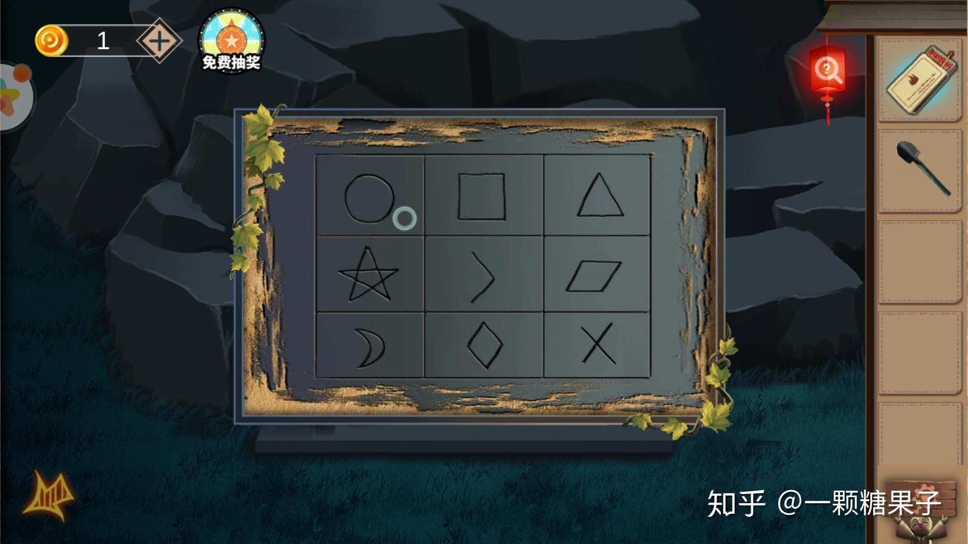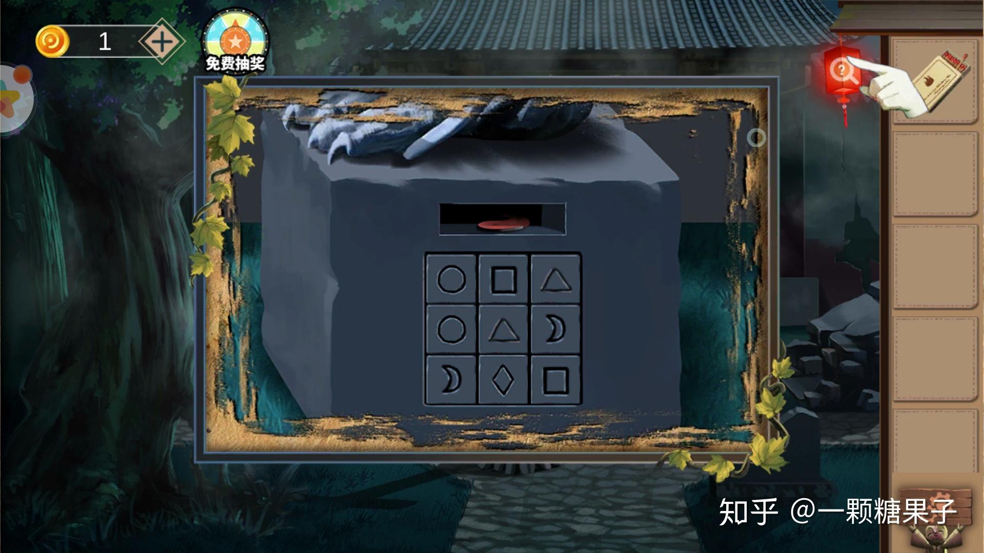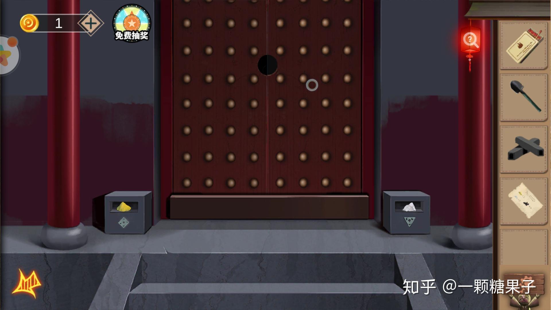 在院子入口拿到铲子柴炭等,墓碑上拿到方形钥匙,右边鞋子里拿到三角形钥匙,纸片等。操纵方形钥匙和三角形钥匙获得火药原料,并按照纸片配比,点炸得带密码石块,对照之前墓碑翻开右边石像,得红色八卦