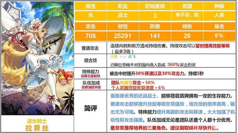 本文中,我将连系我的玩耍体验,对部门角色停止简单评析。文中所有概念仅代表我小我概念,希望能为即将进入《坎公骑冠剑》的你供给一些小小的帮忙。