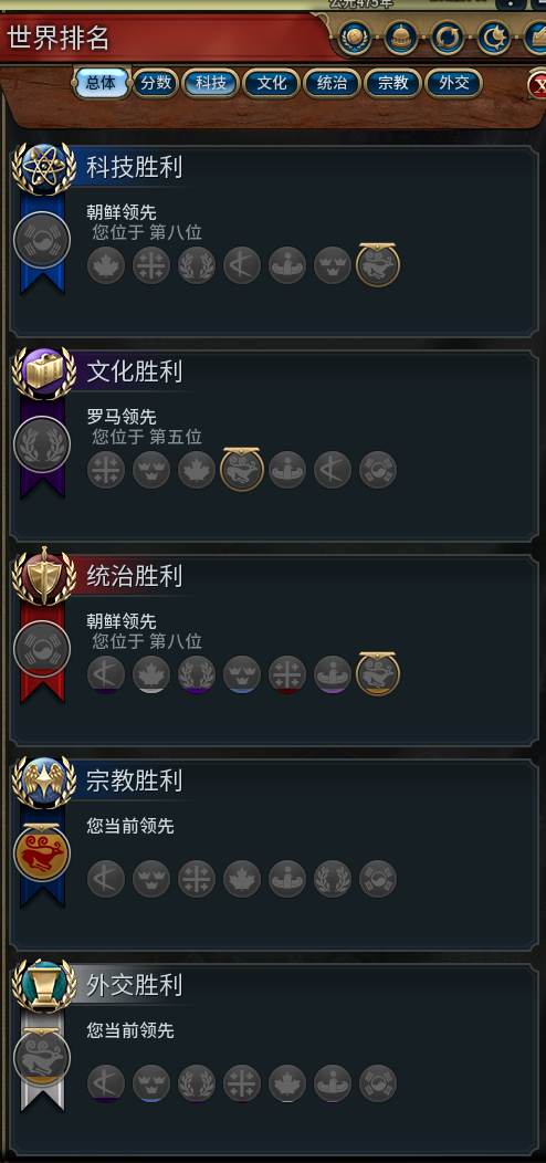 (图2.29 世界排名)世界排名:文明六共有6种成功体例,在那里能够间接看到本身目前国度的排名,也能够用于查看敌手的进度,便利做出调整。好比在对方已经完成火星殖民,你却刚造返航空中心,那么你就能够给对方的航空中心来一发世界核平。(只要敌手造不出火箭,那我就是飞天成功)