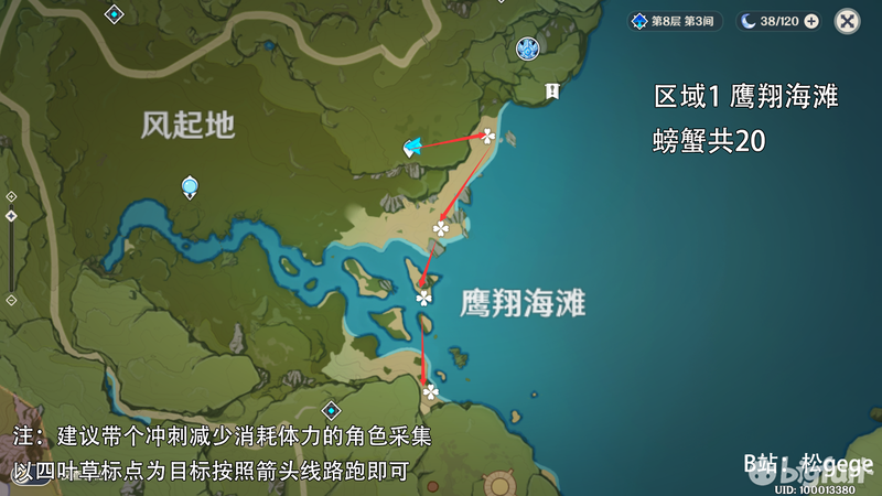 螃蟹3个区域共50+2个无限刷新螃蟹点