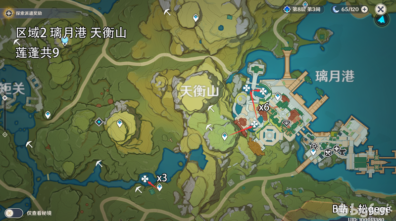 区域2 璃月港 天衡山 莲蓬x9