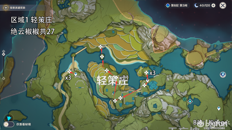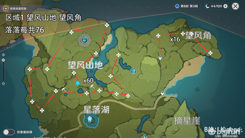 小灯草共54个,没什么线路都在传送点附近