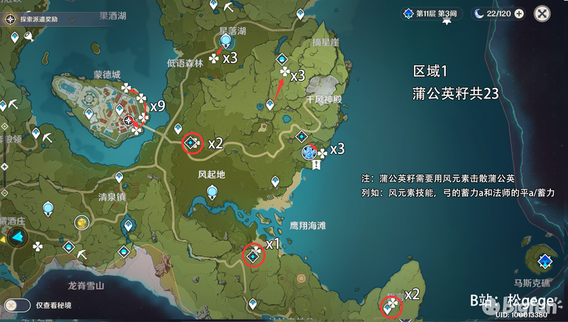 注:蒲公英籽需要风元素击散蒲公英