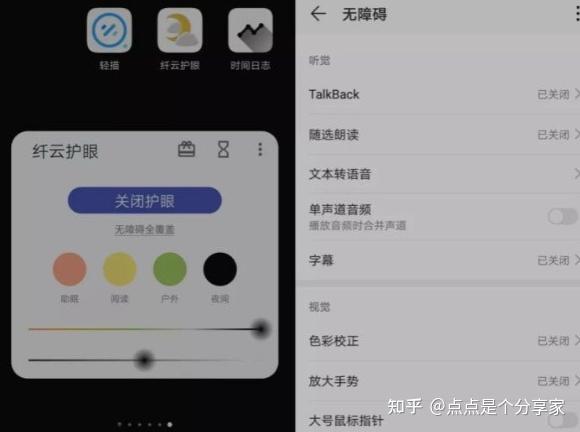 它撑持4大护眼形式,包罗助眠、阅读、户外、夜间,庇护你的眼睛,而且撑持全局笼盖下拉通知栏和底部导航栏。