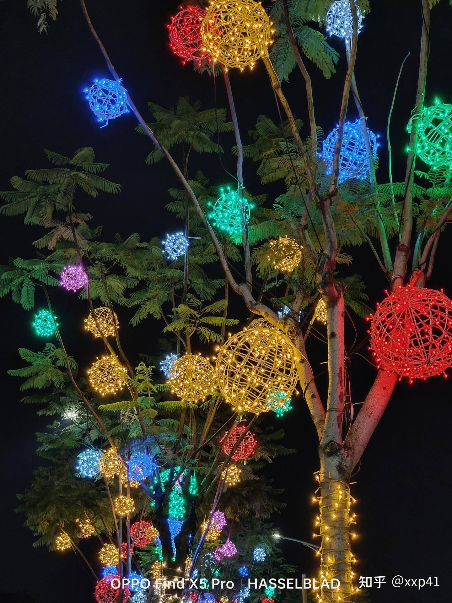 灯光下的表示,从样张来看,OPPO Find X5 Pro 对灯光拍摄,也没有产生一圈圈过度众多的眩光,并且关于其他参照物的细节都很好的保留了下来。