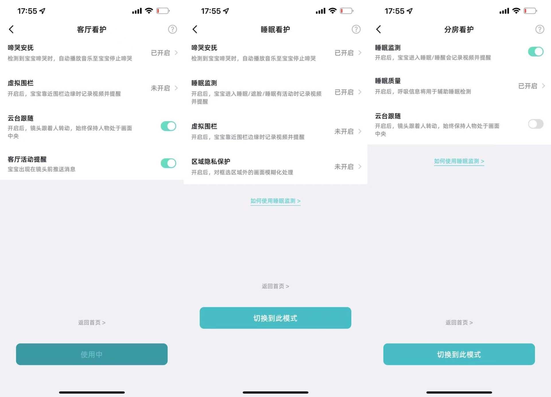 差别的关照形式下,能够开启云台跟从、虚拟围栏等功用,是一台不错的关照机,但是不建议把它当做智能摄像头来安防利用。