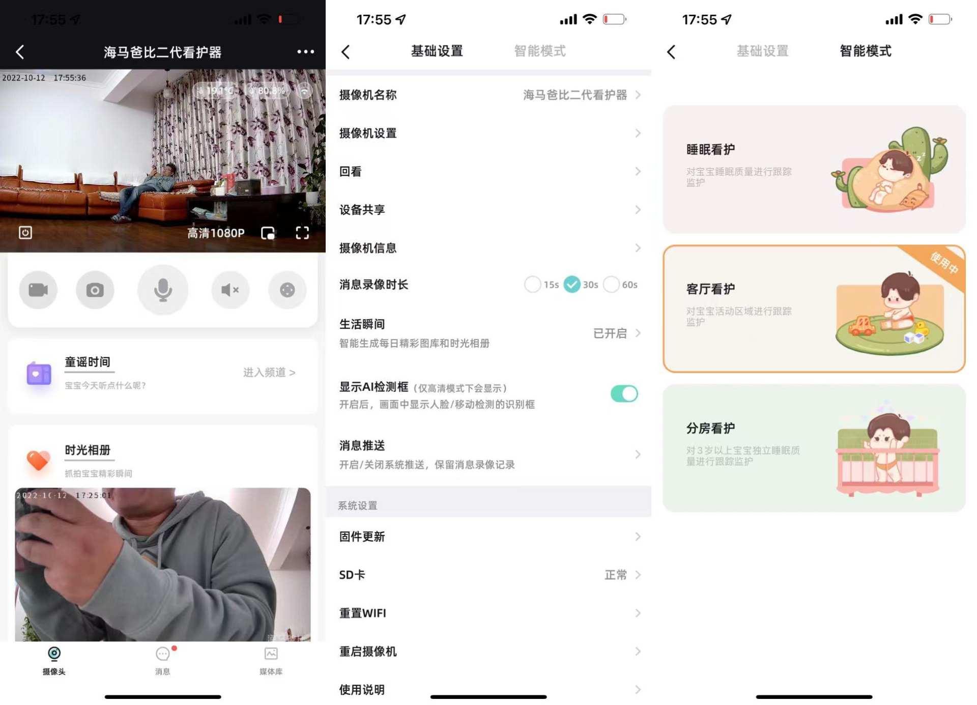 值得一提的是海马爸比主打的是监护睡眠、玩耍的婴儿利用的,所以在安防方面并没有太多的设想,我也是送给刚生娃的伴侣做礼品,随手参加测试一下。