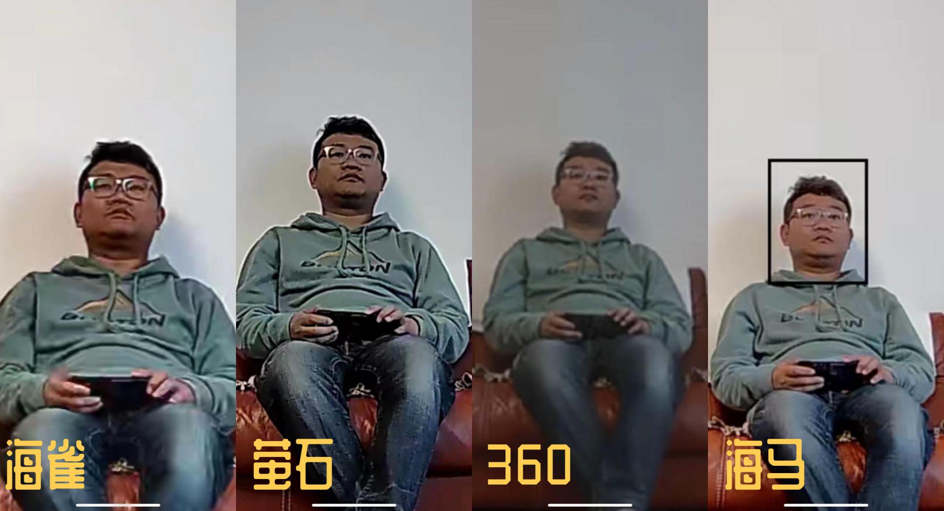 能看到最右侧的海马的画量更好,最能看清我脸部的细节,和它拍摄的人物相对更大也有关系(视野最小)。360的固然有更高的500W像素,但是因为它的画面最广,所以人物在画面里相对较小细节就会少一些,不外仍是能够分辩出来我的五官和长相的。