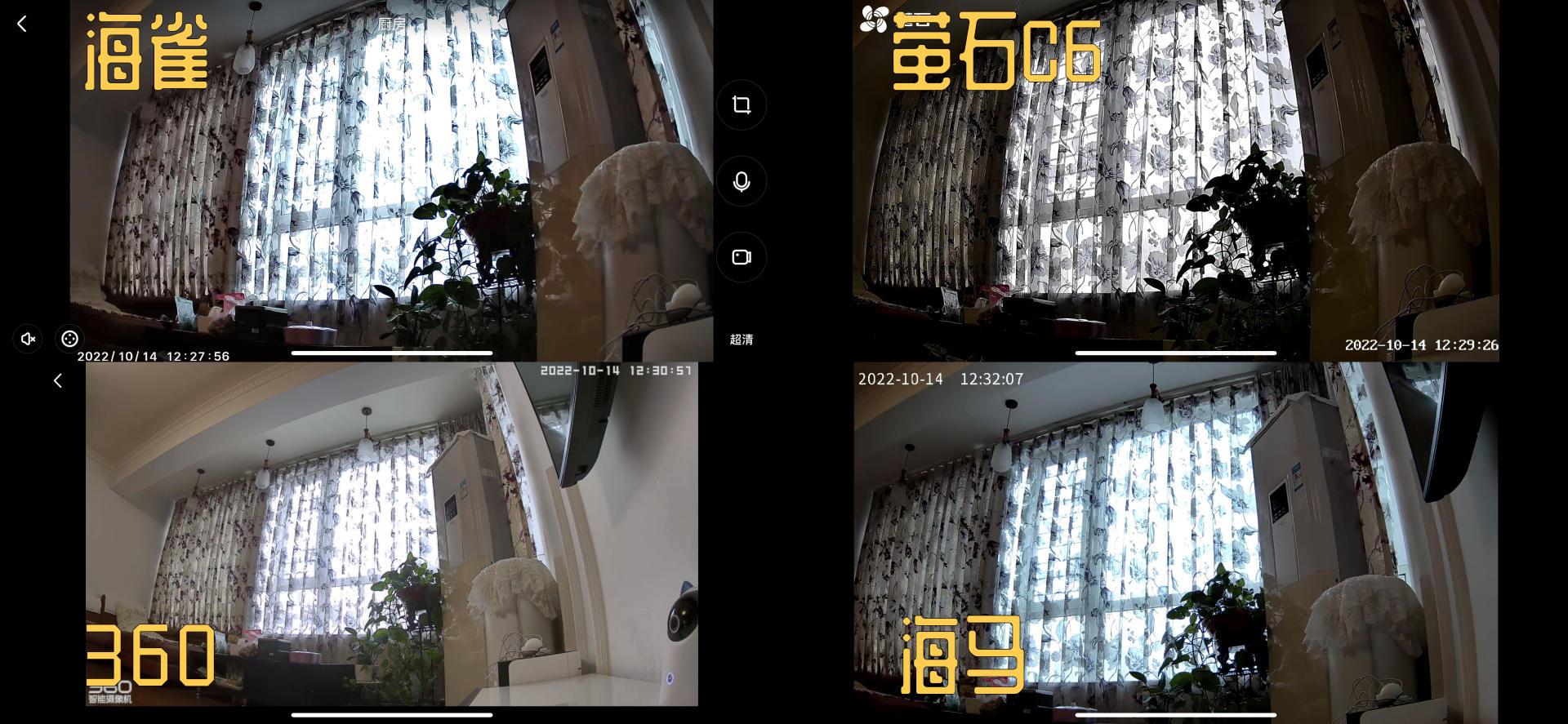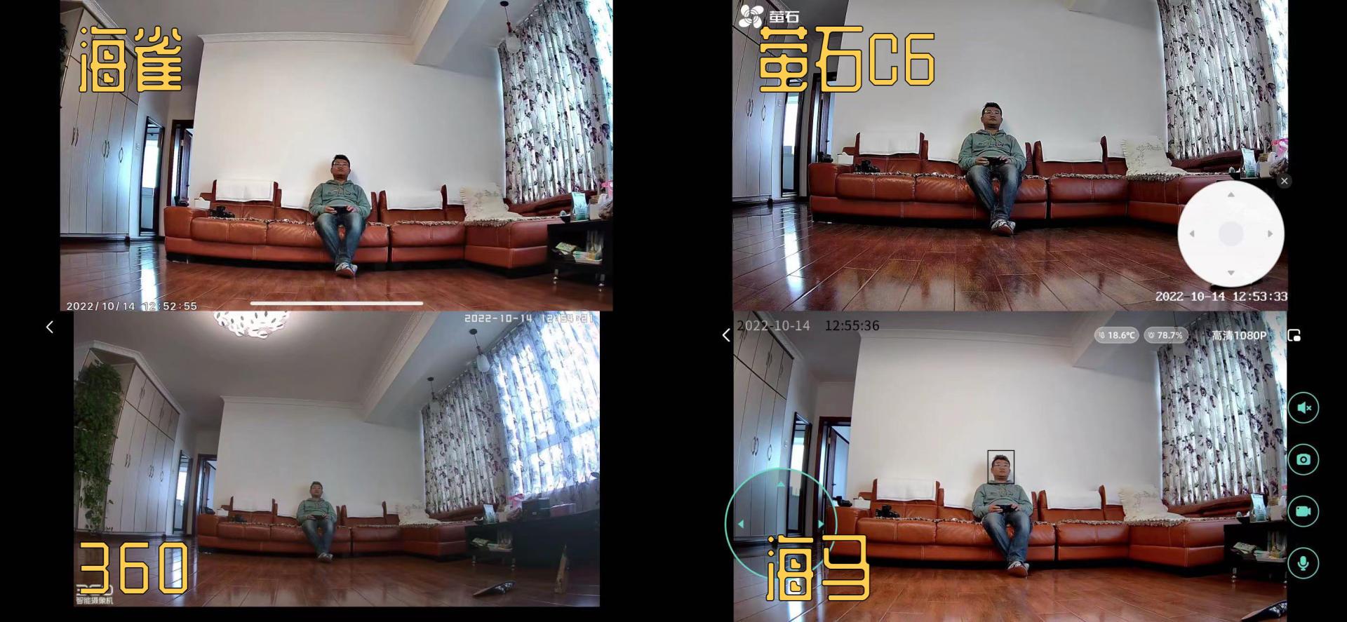 1、外概念评那四台摄像头从左至右(后续的摆放也是一样)别离是华为智选海雀(简称海雀)、萤石C6(简称萤石)、360的8max(简称360)以及最右侧的海马爸比关照机。