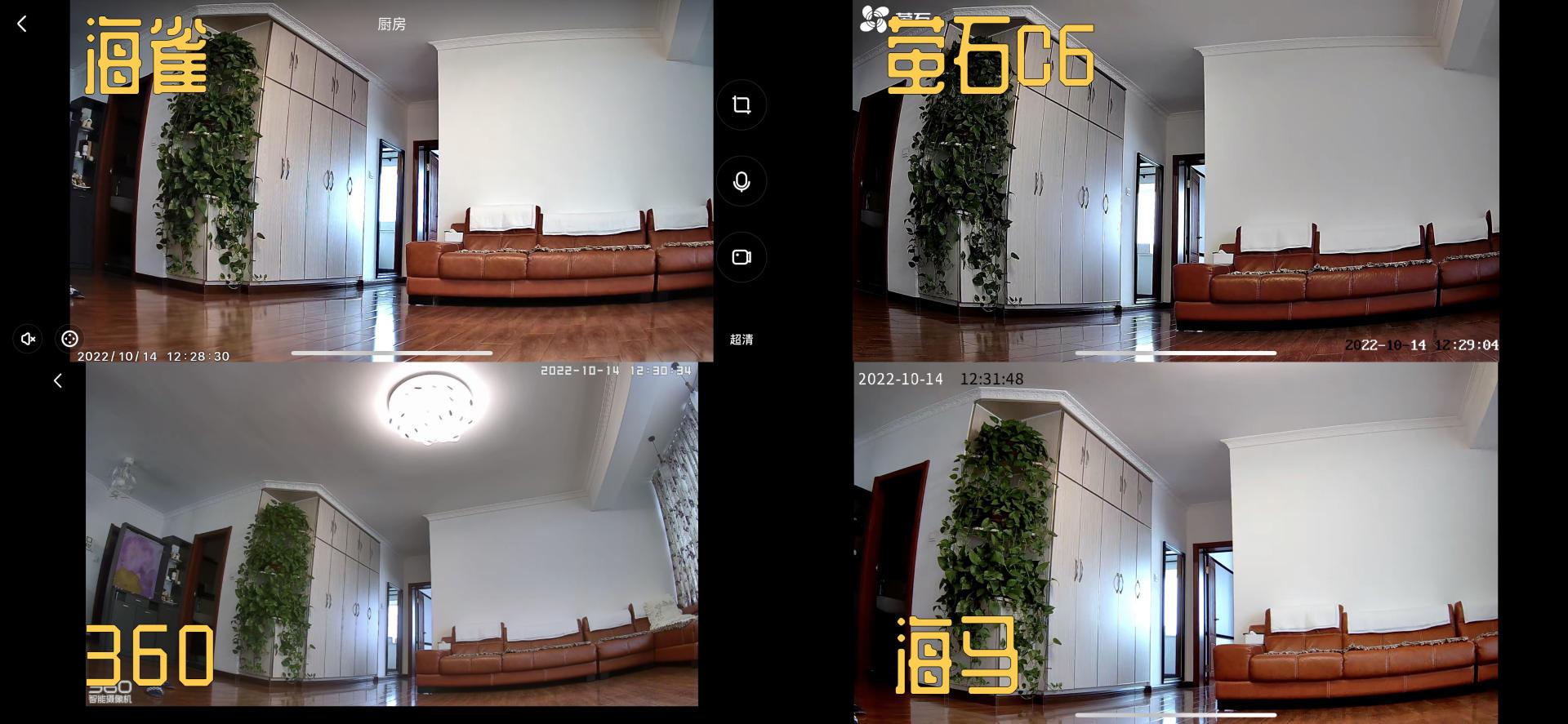 再看看画量。我别离坐在沙发上用4个监控别离截图。