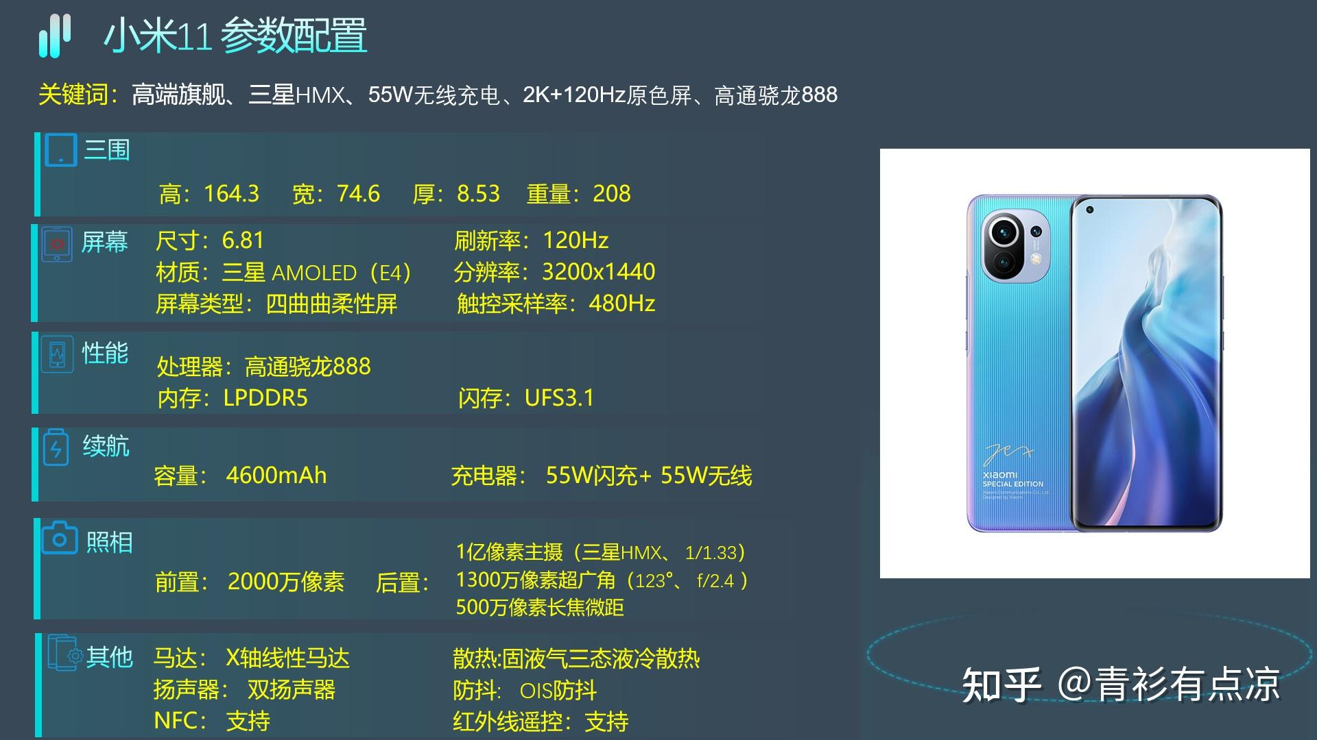 小米11硬件实力同价位无出其右,十分能打,屏幕、性能、影像、音量,续航各方面都是顶配,那个价位首推机型