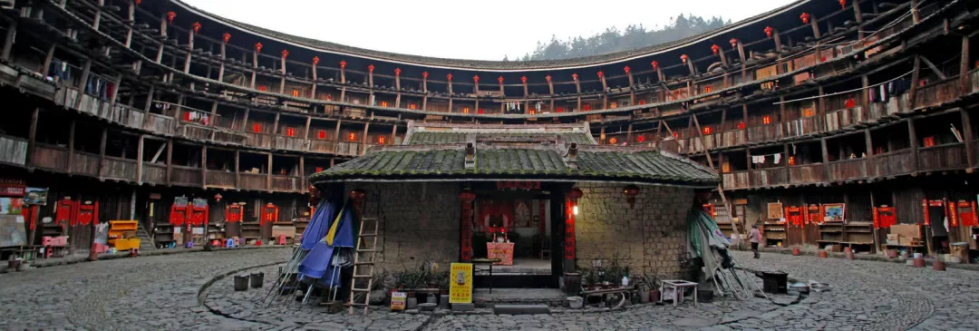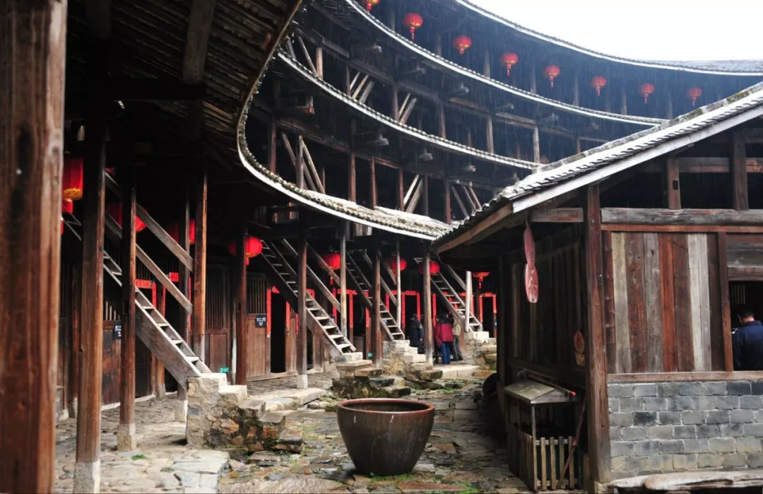 每一座土楼,又好像一个“各人族,小社会”。土楼内,栖身在统一屋顶下的几十户几百人同祖同宗同血缘同家族,过着共门户、共厅堂、共楼梯、共天井、共水井的敦睦生活。