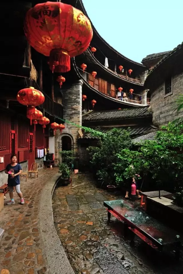 永定是土楼之乡,承启楼是出名的那一座,被誉为“福建土楼王”,是福建土楼中规模更大、环数最多的一座,保留了本来的四圈气概,履历数百年照旧无缺如初,还住着人。