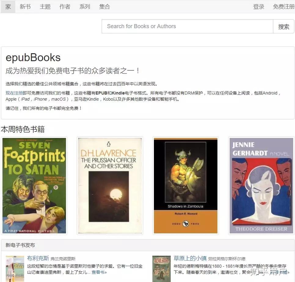 EpubBooks 平台是一种自我出书和电子册本分销的网站,本站所有的电子册本都能够免费下载利用,而且能够读取所有流行的电子书阅读器,通过EpubBooks间接发布的多为典范小说,其汗青能够逃溯至20世纪中叶,例如典范的福尔摩斯历险记、狂妄与成见、爱丽丝梦游仙境等等。