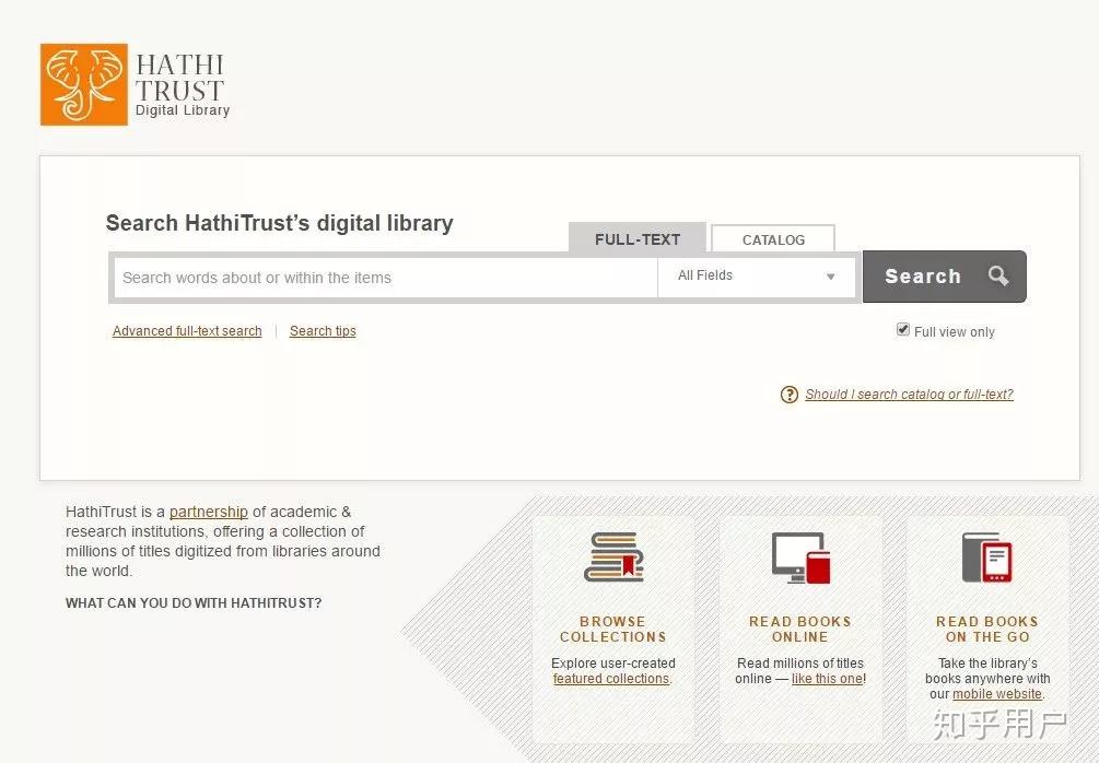 HathiTrust是学术和研究机构合做,供给一个搜集世界各地的数以百万计的图书数字化藏书楼。可在线阅读,也可下载。