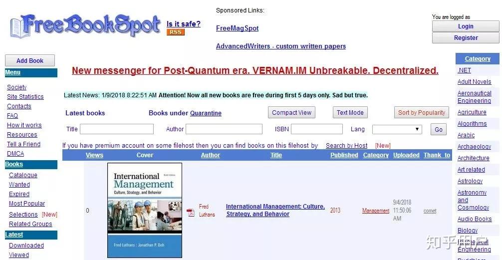 Free-eBooks是一个供给免费电子书下载,电子书资本,电子书做者介绍的网站,你能够免费下载你喜好的电子书,也能够上传你本身的电子书分享。你需要注册成为该网站的用户才能够下载它们的电子书资本,不外注册是免费的。