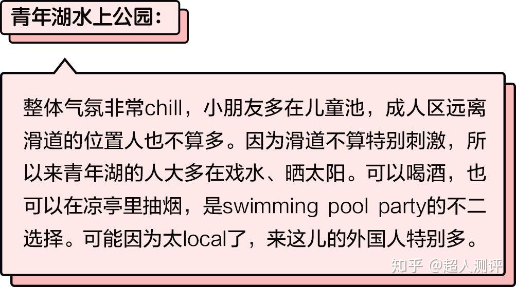 向阳公园和青年湖没有造浪池,两个露天泳池,戏不多,但仍旧能够尽情relax。