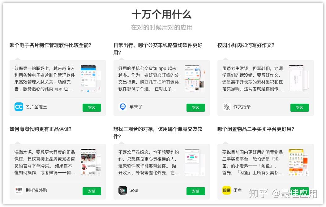 豌豆荚里面有两个模块做的很棒,一个是专题,一个是十万个用什么,通过用户的需乞降利用场景,将APP停止保举,那个设想很用心。
