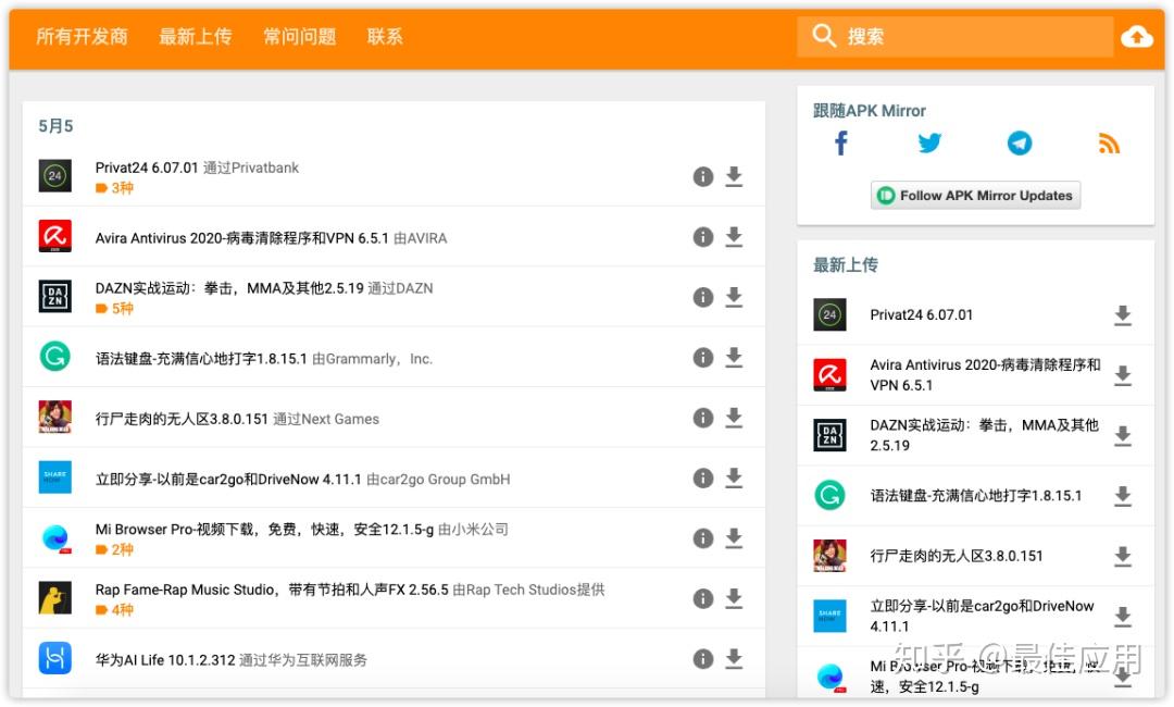 06 APKMirror——国外安卓应用下载S场那个应用S场和APKpure一样,国内无法拜候,只要网页版,界面是英文,所以各人在拜候的时候建议通过阅读器翻译为中文再拜候。