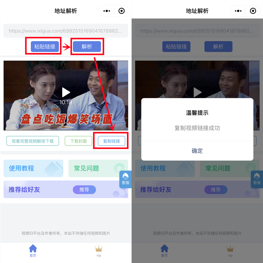 解析胜利后,会显示下载按钮,点击即可复造下载链接。将下载链接粘贴到电脑阅读器,即可播放视频,在播放界面点击鼠标右键,即可保留视频。