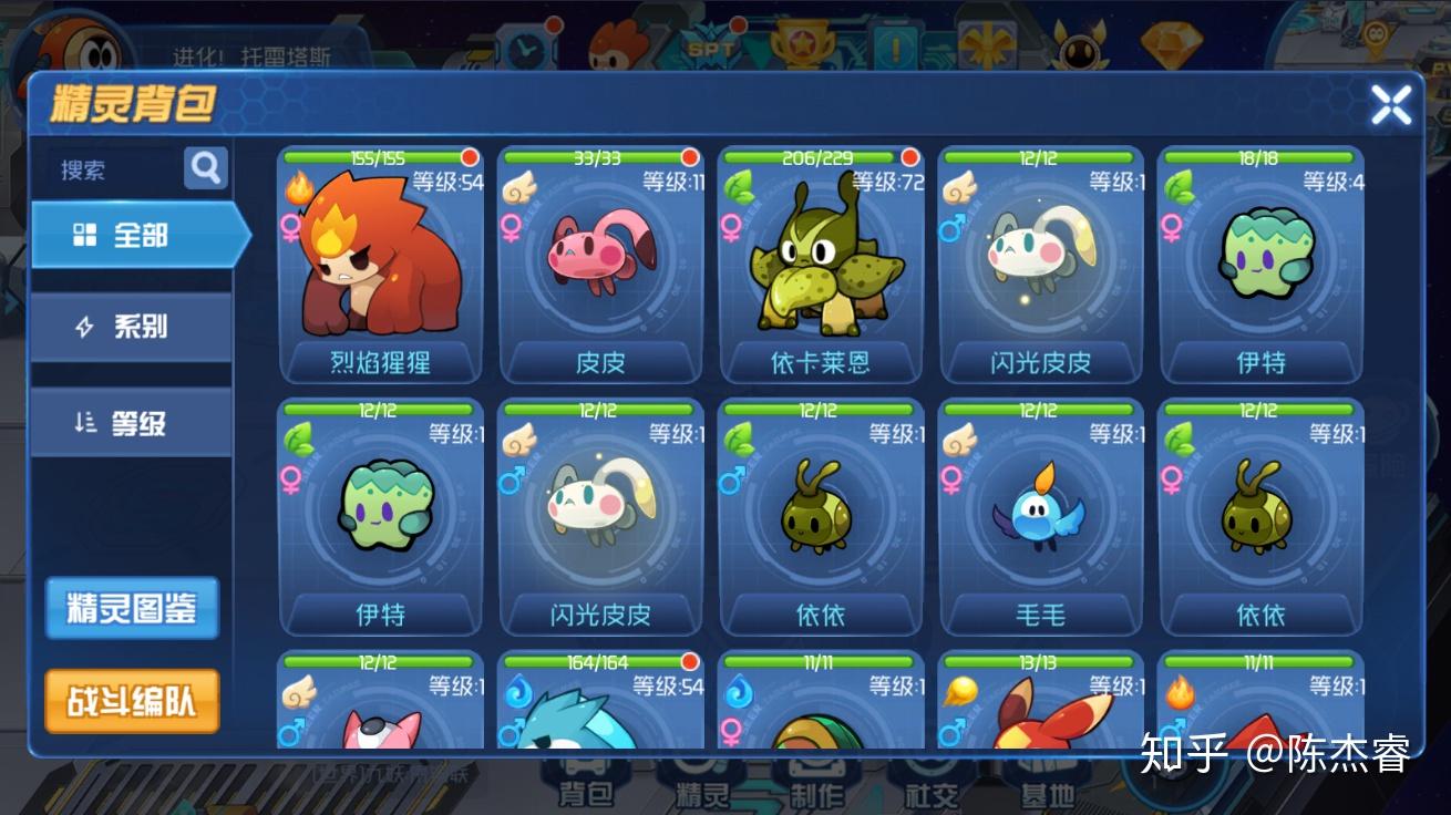 三种分类体例精灵背包就是精灵仓库,没有上限,爱放几只放几只,全数列表中的摆列挨次是根据抓捕挨次排的,已经简化的不错了,游戏要搞清晰本身的定位,简介了然就好。点来点去也很费事。
