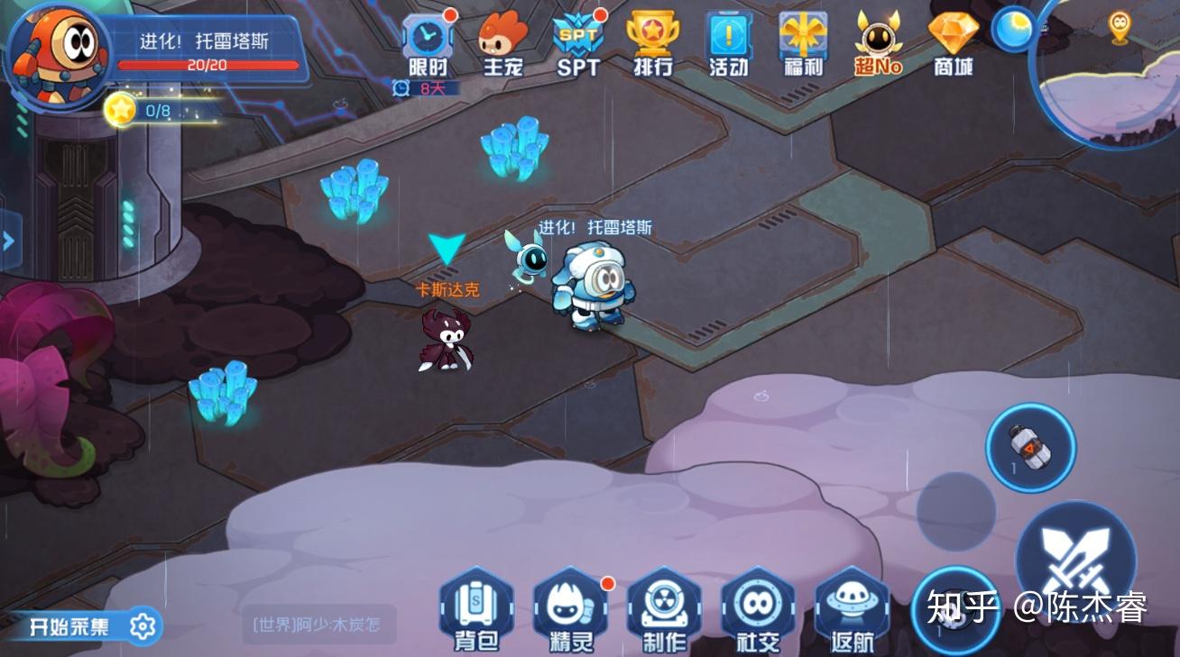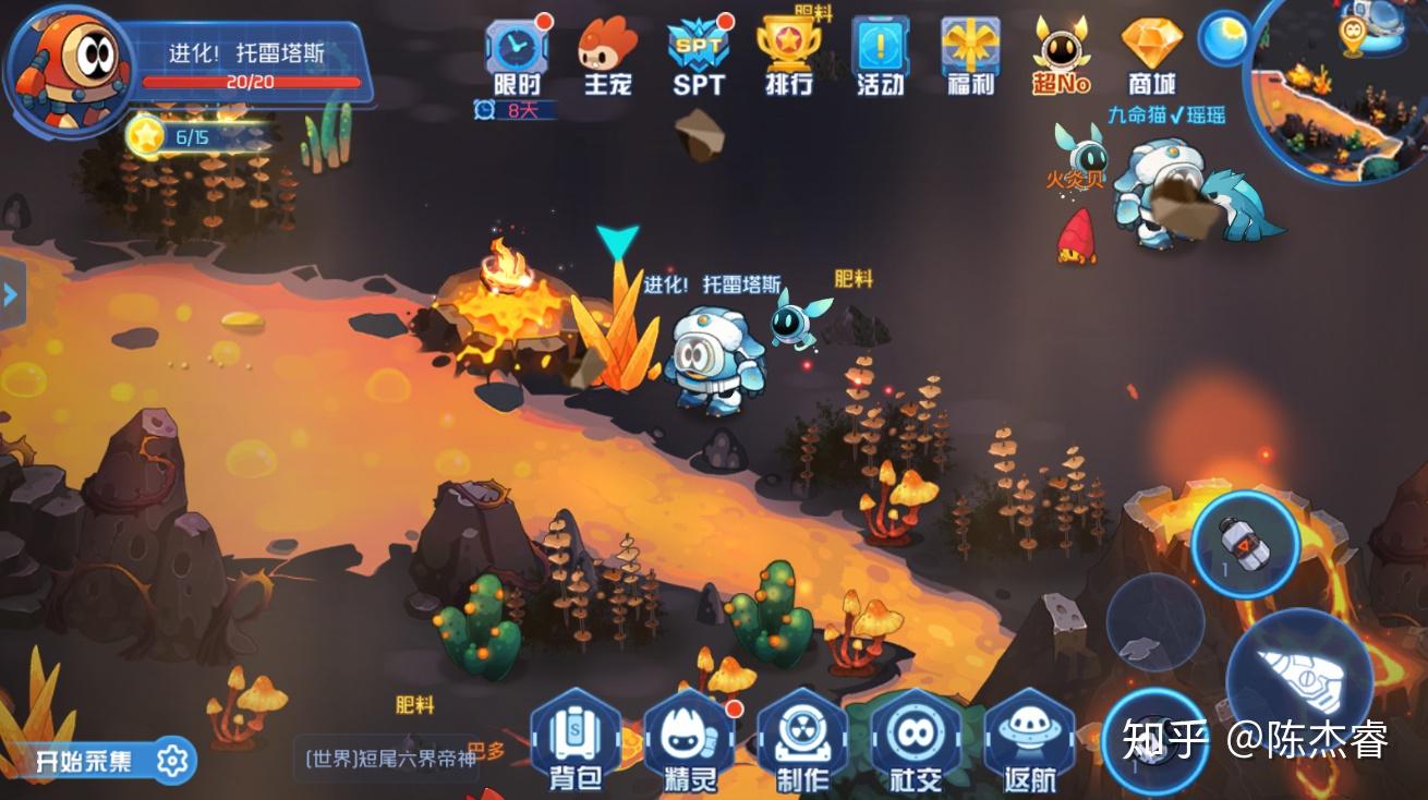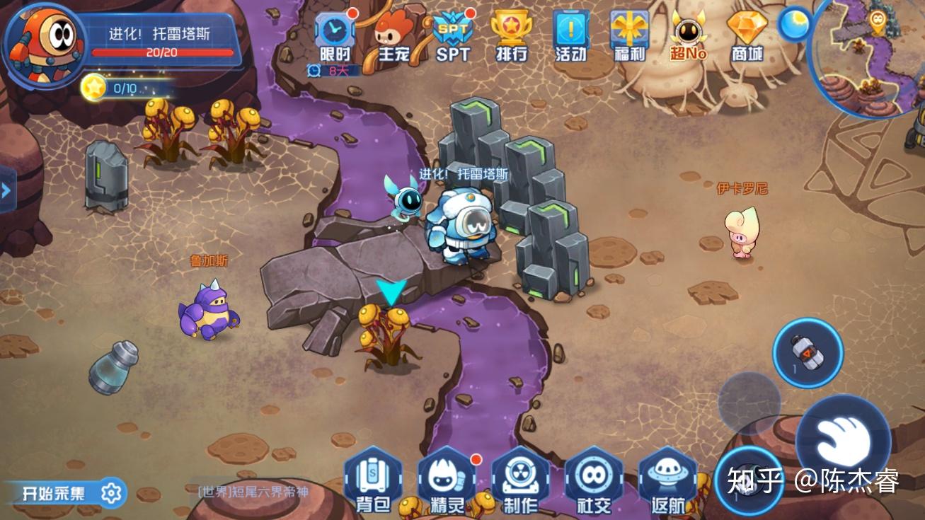 巨石山,能够搜集质料造做炸药,把山炸了能够领取星能(后面讲)草丛里躲着精灵依依,需要烟雾弹或者防火烧草把他引出来木桥那个木头里有时候会呈现一只眼睛,那时候你只需要抛一个花瓣过去,小豆芽就出来了啦池塘断桥和食人花,断桥能够用东西电锤修复,食人花能够采摘,也能够用来过河老熟人,不介绍了池沼地,需要特殊东西每天的使命就是去那些星球练级抓怪搞资本,资本实的是那游戏的一大肝点,我觉得我玩的不是赛尔号,而是饥荒。