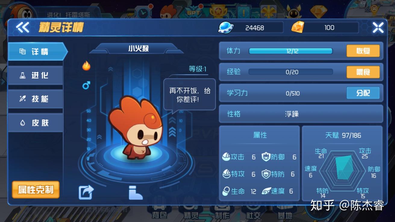 技能栏能够查看当前形态所能进修的技能,留意只是当前形态,小火猴是看不了猩猩的技能的,技能介绍比原版还齐备,效果全告诉你了,不消费力点着看。