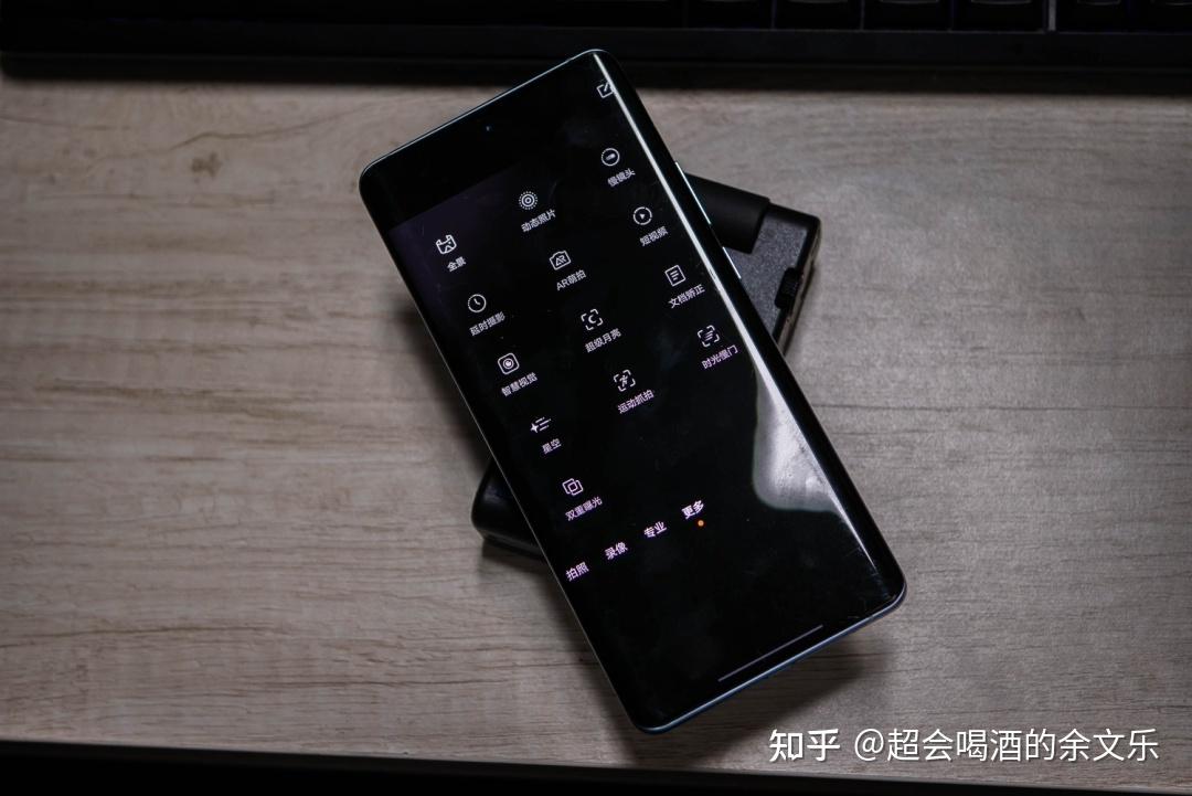 那款手机的曲角边框深得我心!看起来很高级,并且手机很薄,很轻,拿起来不重,很合适女生。朝露白的后背玻璃很都雅!能够反射出粉蓝的光,绝了!