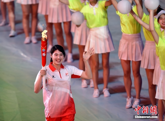 全运会开幕式主火炬手由苏炳添张雨霏等体育名将担任。中新社记者 侯宇 摄当体育相逢热情的陕西人民