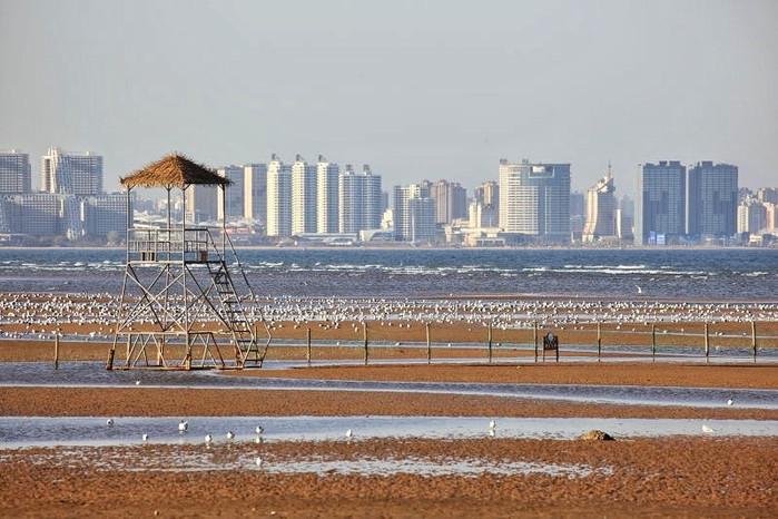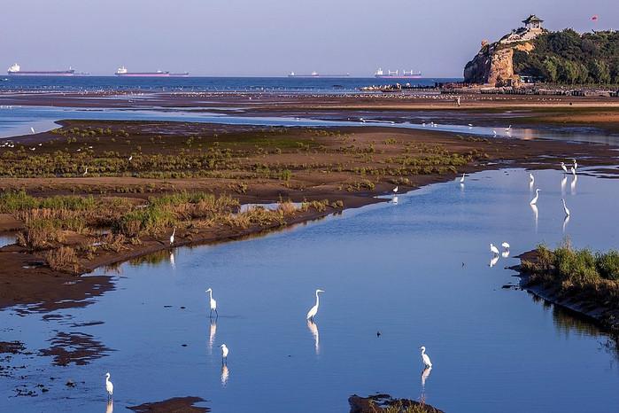 从鸽子窝的鹰角亭瞭望,东面是苍莽大海,万吨巨轮散落海面;北面是 秦皇岛 S区,高楼鳞次栉比;西面是燕山山脉,层峦起伏;面前更震撼的就是被称为 亚洲 地域更大海洋滩涂的鸽子窝湿地,十分美。