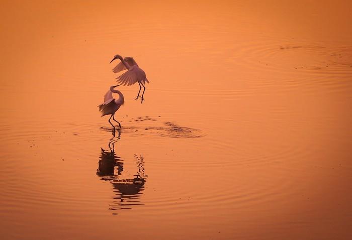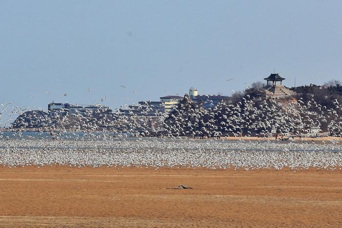 我在前一篇文章中曾介绍过,鸽子窝湿地也是不雅鸟的绝佳之处,每年春秋时节(每年三月下旬至四月下旬,九月上旬至十一月中旬),数以万计的珍稀留鸟在那里觅食、停留,成为又一 大新 景不雅。即使是夏日少了南来北往诸如丹顶鹤、天鹅之类的留鸟,也还会有各类鹭鸟和海鸥聚集在此,不乏欣赏性,上图就是七月底拍的。