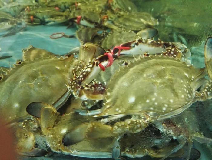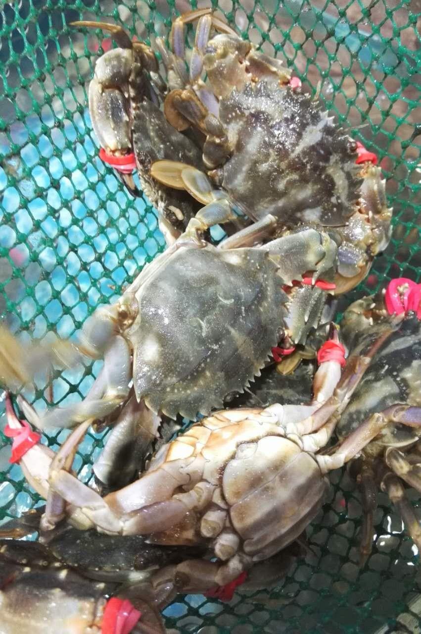 特意拍了一只肚皮朝天的,肚皮上的阿谁盖子是圆的,本地叫圆脐,也就是母蟹。