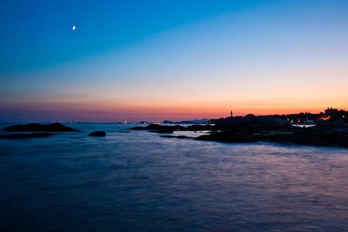 关于炎天拍日落,我体味有两处较好的地点,一是鸽子窝公园内的鹰角亭,二是再往 东海 天一色酒店的泊车场附近,详细位置就是上图远处有一个圆形的建筑叫做海上音乐厅,那里不是景点但泊车收费。