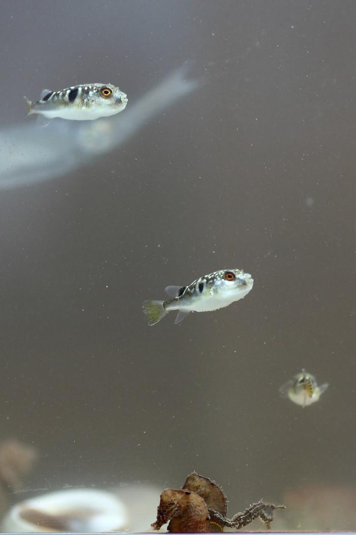 河豚,俗称辣头,内脏和血液剧毒,肉量鲜美,那条是从海里捞的纯野生的,据说体侧阿谁黑点越黑毒性越强,别问我为什么河豚生活在海里,那个我也不晓得。